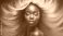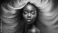 Kobieta której długie, zdrowe włosy opadają miękko na tle wyrazistej czerni, podkreślając ich naturalne piękno.