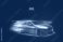 • Futuristic drift car in motion with neon fast lines and abstract smoke. High speed concept in technological blue purple colors. Sport car is made of polygons, lines and connected dots. Digital auto.