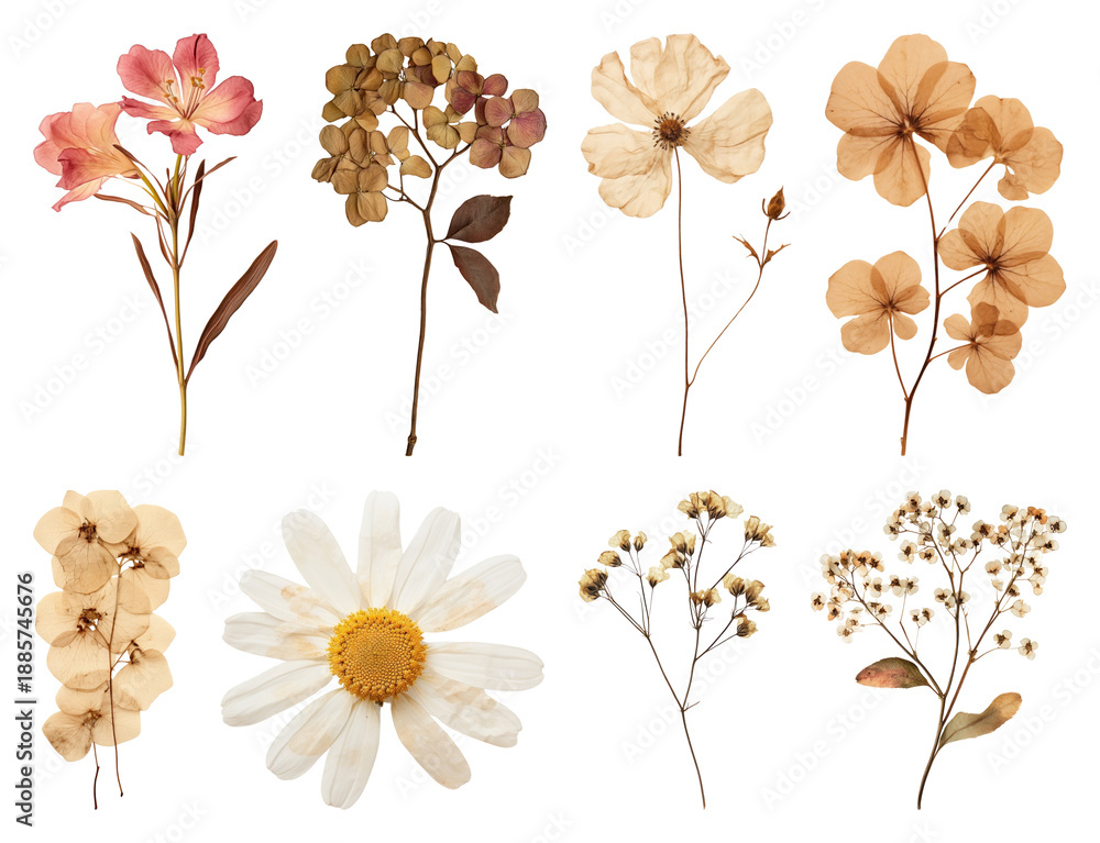 Naklejki Fantasy - PNG Pressed flowers in various arrangements, transparent background #1885745676
