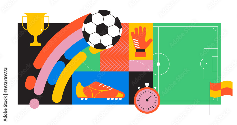 • Geometric background for soccer World Championship 2026. Modern colorful football competition design.