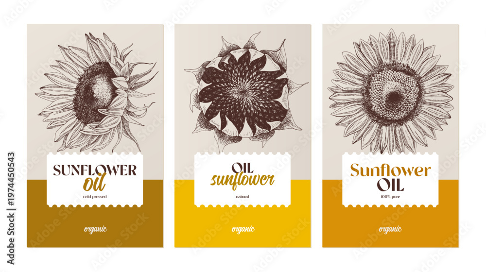 Naklejki Fantasy - Sunflower oil vector label templates #1974450543