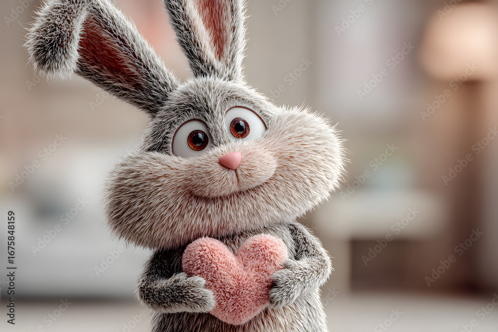 Naklejki Folklor - Kelinci Imut 3D Memegang Hati #1675848159