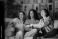 • Happy diverse friends eating popcorn watching tv in the night
