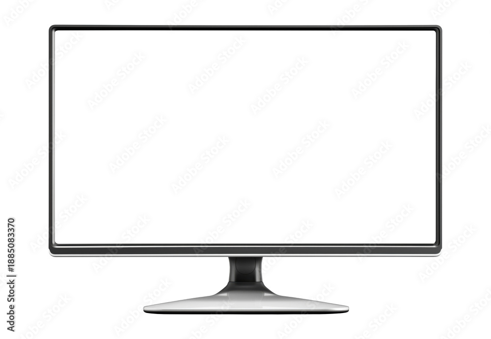 • Computer monitor with blank screen and silver stand, isolated on transparent background