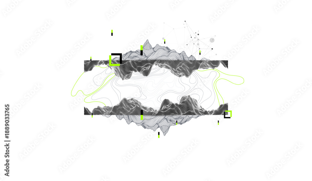 • Abstract art wireframe background. Modern science or technology art elements. Surface illustration. Vector.