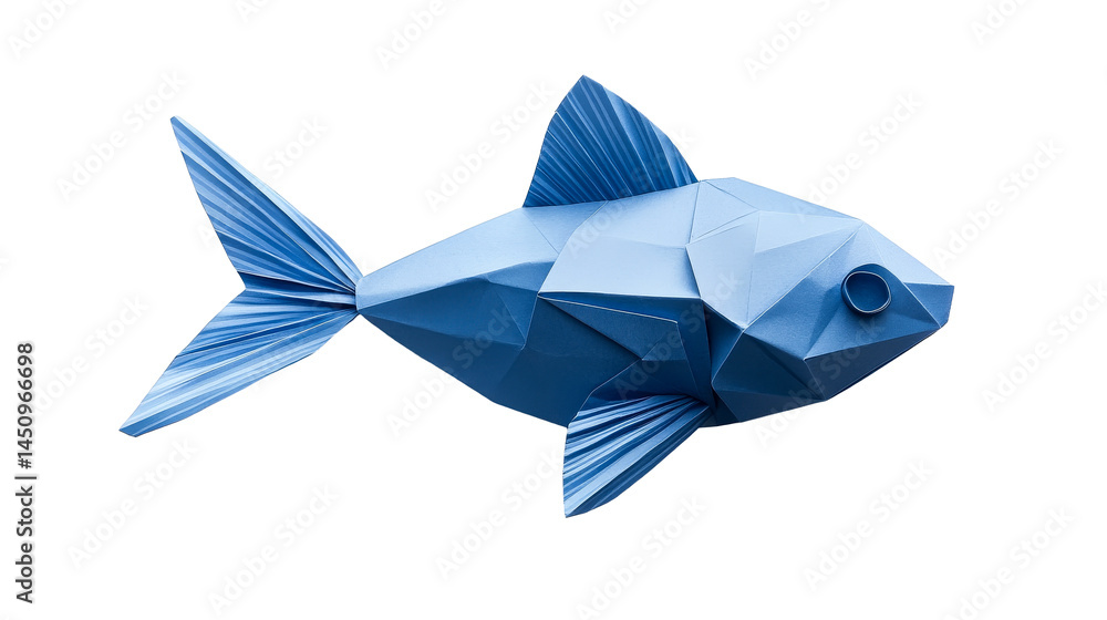 Naklejki Origami - Stylized origami fish sculpture, geometric, folded paper, cut out transparent #1450966698