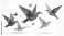 • Colorful origami birds in flight against white background