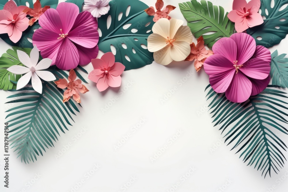 Naklejki Origami - Tropical plants floral border flower nature petal. #1787947514