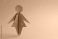 • A purple origami figure of a woman stands against a gradient backdrop