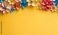• Handcrafted origami floral border on bright yellow backdrop with central empty copy space