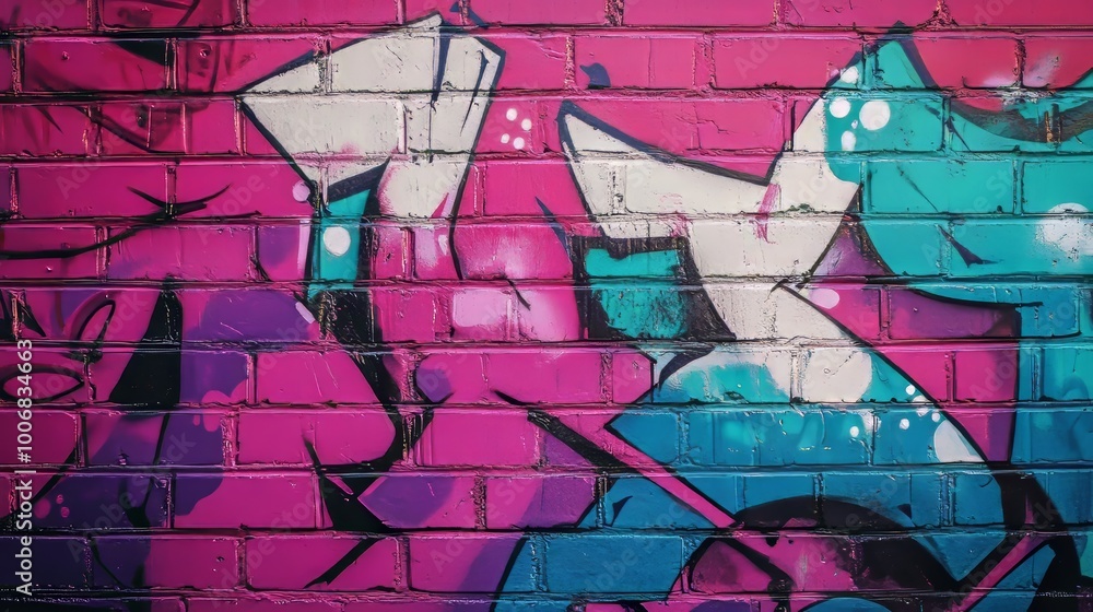 Naklejki Street Art - A vivid graffiti mural adorns a brick wall, characterized by its bright colors, intricate street... #1006834663