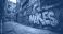 Naklejki Street Art - A graffiti covered alleyway with the word Mike written on it. The alleyway is filled with... #1559657060