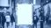 • Blank poster attached to a concrete pillar in a busy urban street.