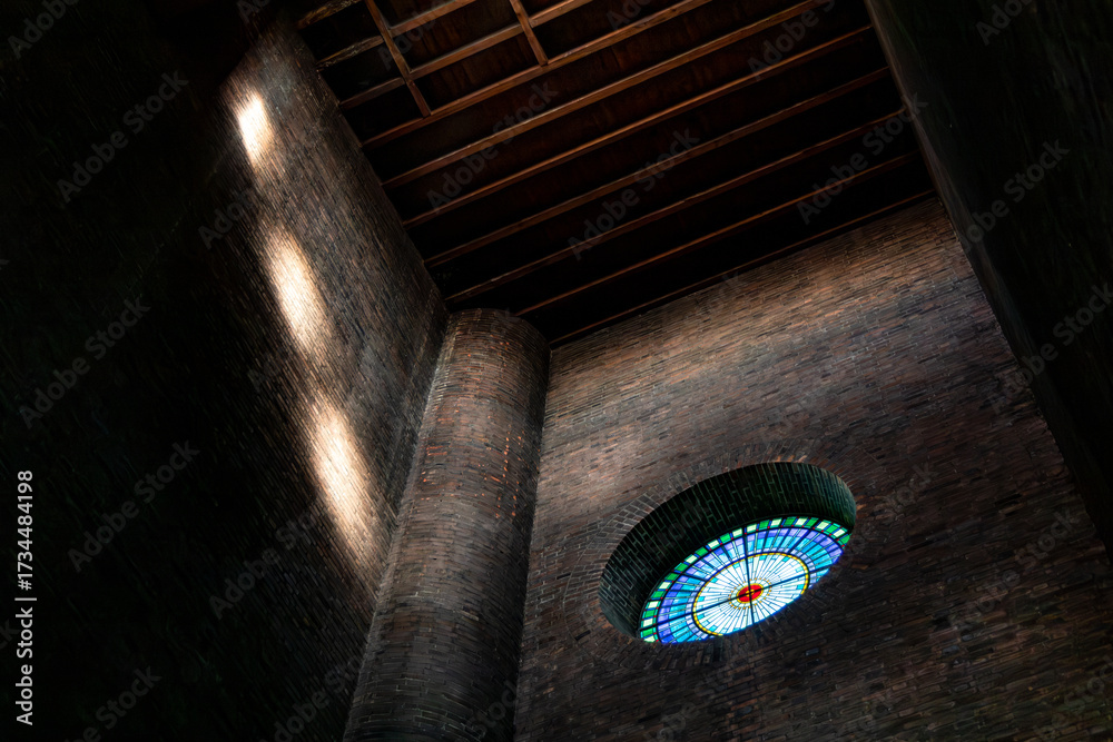 • Piękna, niebieska rozeta w modernistycznym kościele