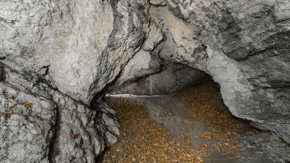 Naklejki Kamień - przejście w środku jaskini struktura ścian #1869422401