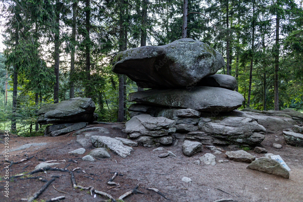 Naklejki Kamień - Chybotek (do 1945 niem. Zuckerschale) – granitowa grupa skalna (chybotek) w Górach Izerskich, w... #870291854