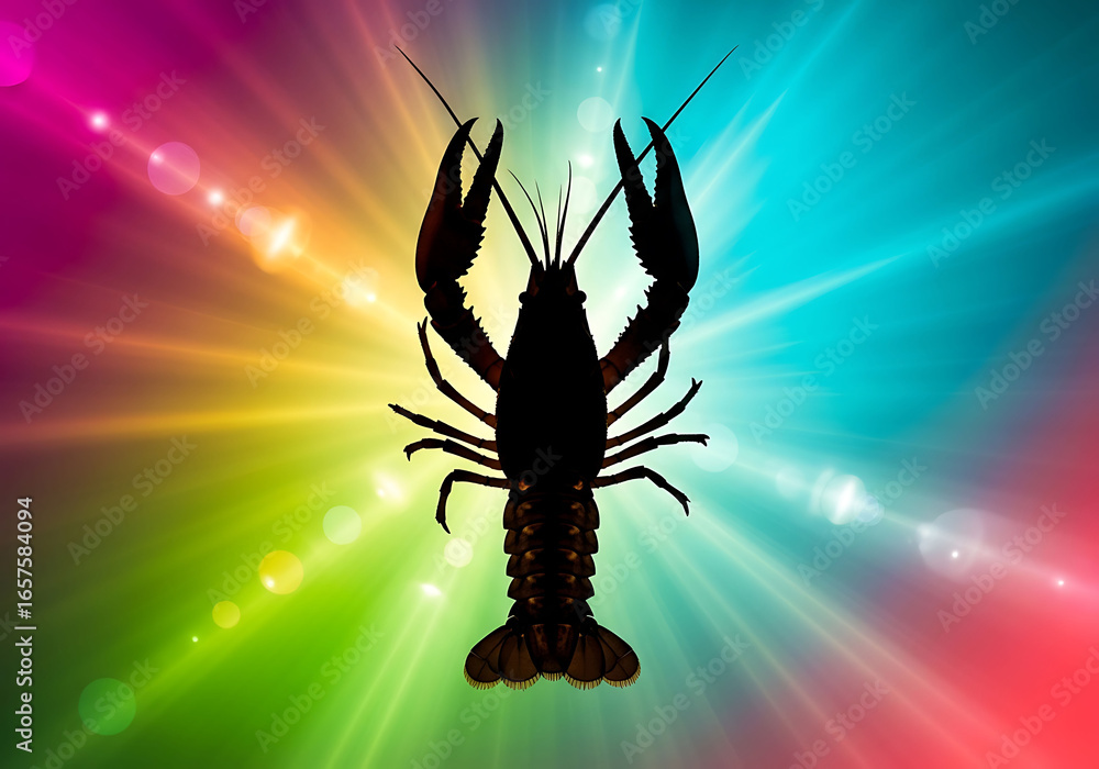 Naklejki Kosmos - Silhouette of a crayfish against a vibrant starburst background #1657584094