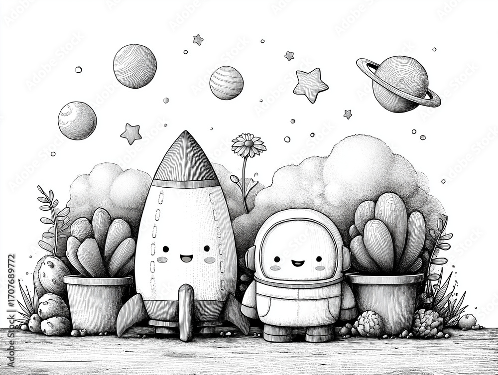 Naklejki Kosmos - Kolorowanki dla dzieci – kosmos, planety, rakiety i astronauci do kreatywnego malowania i zabawy... #1707689772