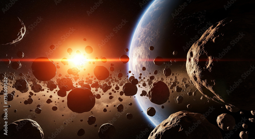 Naklejki Kosmos - rocks and planets in space with a beautiful view of sunlight #1758001502