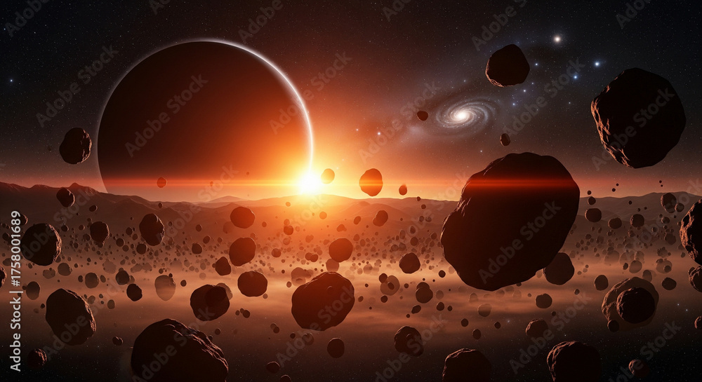 Naklejki Kosmos - rocks and planets in space with a beautiful view of sunlight #1758001689