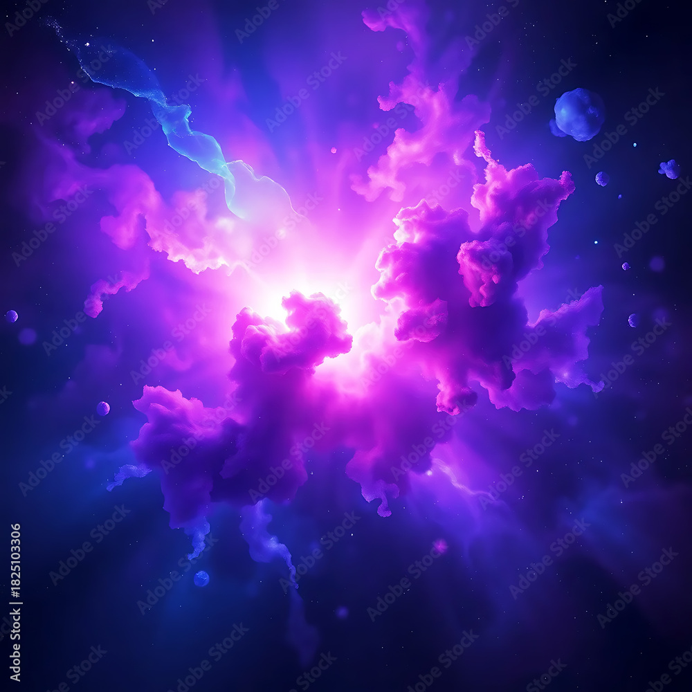 Naklejki Kosmos - Deep Space Nebula Background, Vibrant Blue Purple Abstract Texture, Generative AI Illustration #1825103306