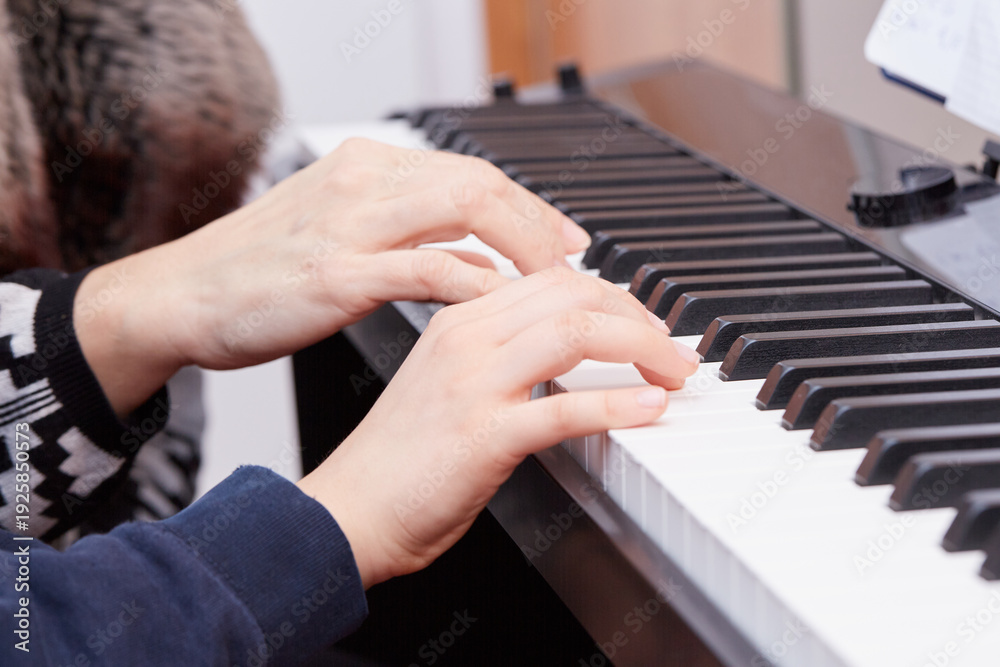 Naklejki Muzyka - Ręce dziecka na fortepianie, klawiszach- nauka gry #1925850573