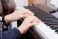 • Ręce dziecka na fortepianie, klawiszach- nauka gry