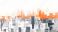 • Nowoczesna panorama miasta z abstrakcyjnym pomarańczowym gradientem — stylizowana ilustracja koncepcyjna architektury i urbanistyki