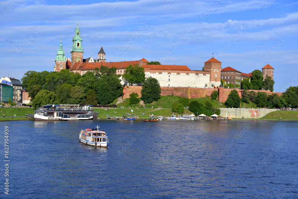 • Zamek Królewski na Wawelu, dawna siedziba i miejsce koronacji Królów, Kraków, Małopolska, Polska, panorama, krajobraz miasta,