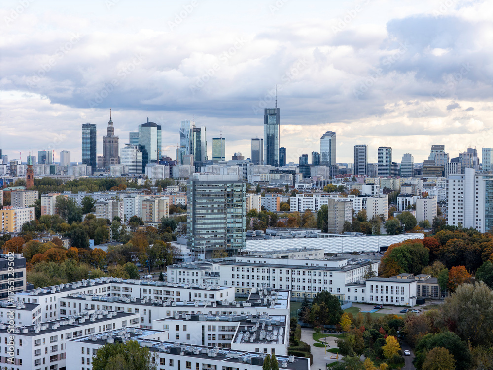 Naklejki Panorama - Warszawa, panorama miasta widoczna z okolicy Starych Powązek, jesień #1755129502