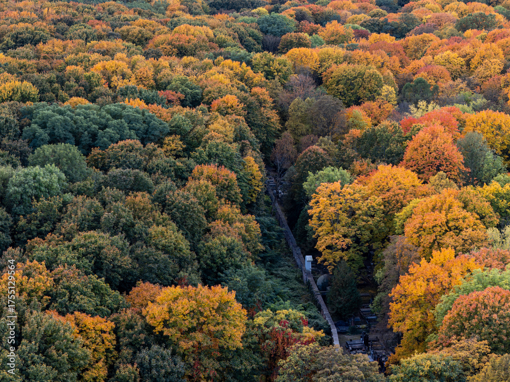 Naklejki Panorama - Warszawa, panorama miasta widoczna z okolicy Starych Powązek, jesień #1755129564