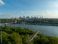 • widok z lotu ptaka na centrum Warszawy, panorama miasta, wieżowce i rzekę Wisła, wiosna, zielone drzewa i niebieskie niebo