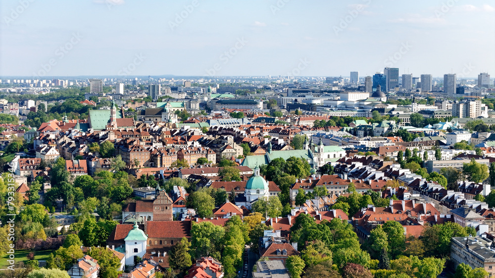 Naklejki Panorama - Warszawa, panorama miasta, niebieskie niebo i delikatne chmury #793315346