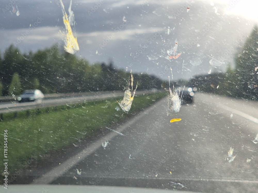 Panel Szklany Plamy - Brudna szyba przednia w samochodzie, słabo widac #1783454956