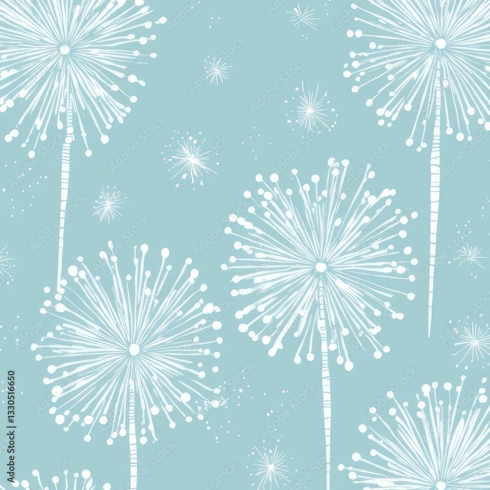Turkus - Whimsical dandelion pattern on a light teal background #1330516650