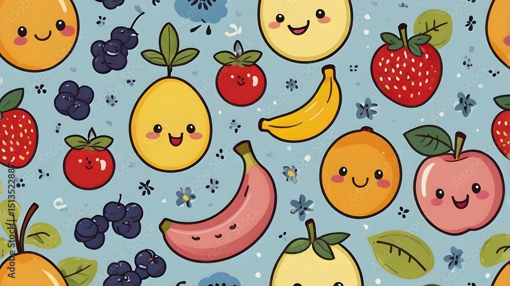 Turkus - Colorful cartoon fruit seamless pattern background #1513522887