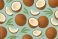 Turkus - Coconut-inspired surface pattern featuring brown husks, white interiors, and natural green... #1583979664