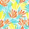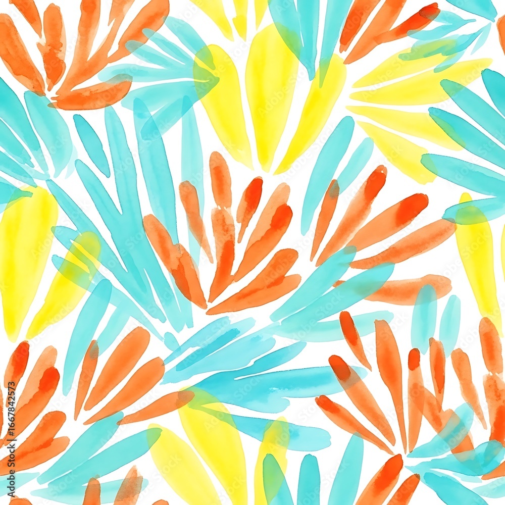 • Vibrant abstract floral pattern with bright orange teal and yellow brushstrokes
