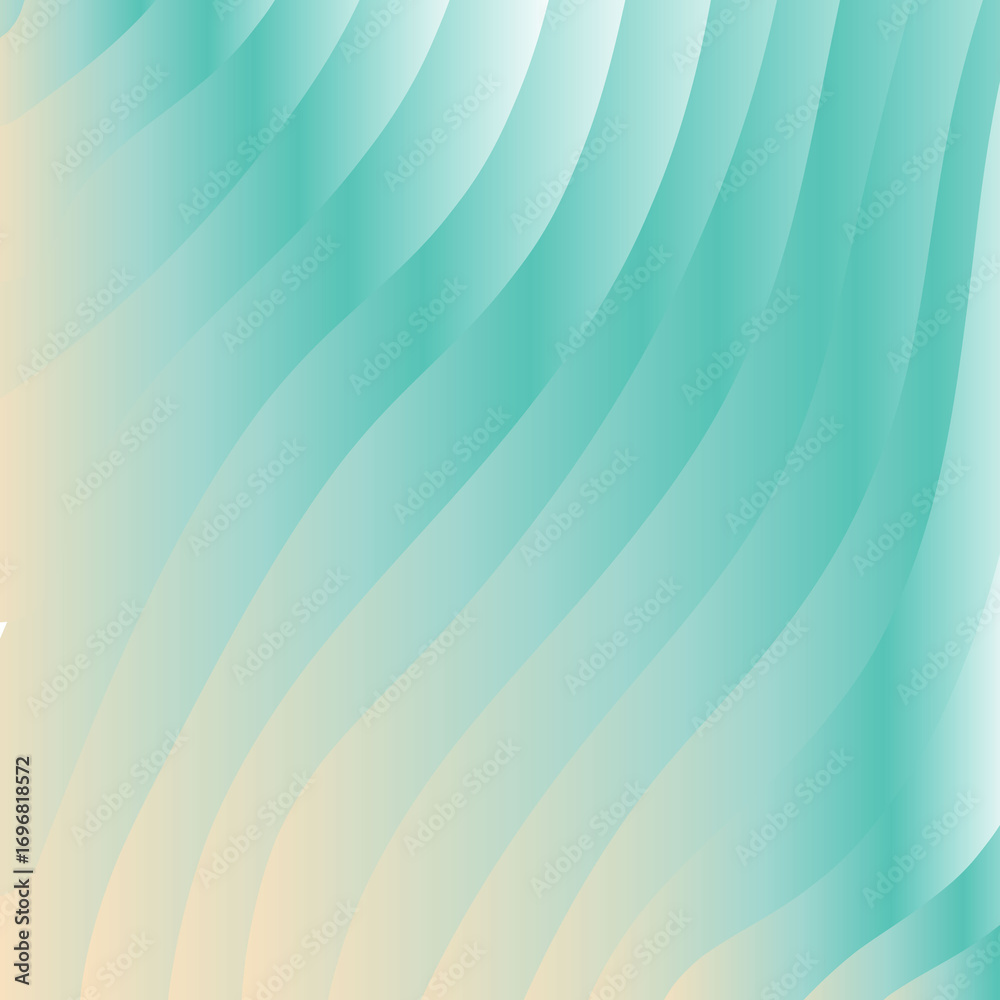 • A fluid abstract pattern of diagonal wavy lines in soft turquoise, beige and white gradients creating a smooth and dynamic visual effect.