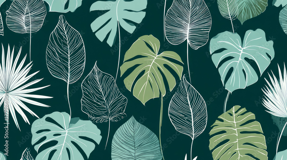 Turkus - Elegant botanical design with a minimalist tropical leaf seamless pattern #1779849001