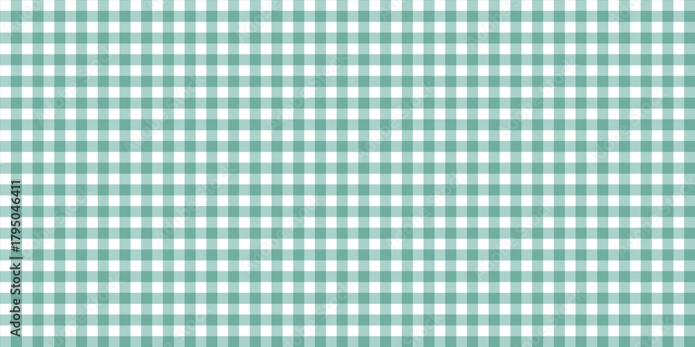 Turkus - Aesthetic teal and white gingham checkered pattern background. Classic tablecloth textile design... #1795046411