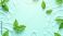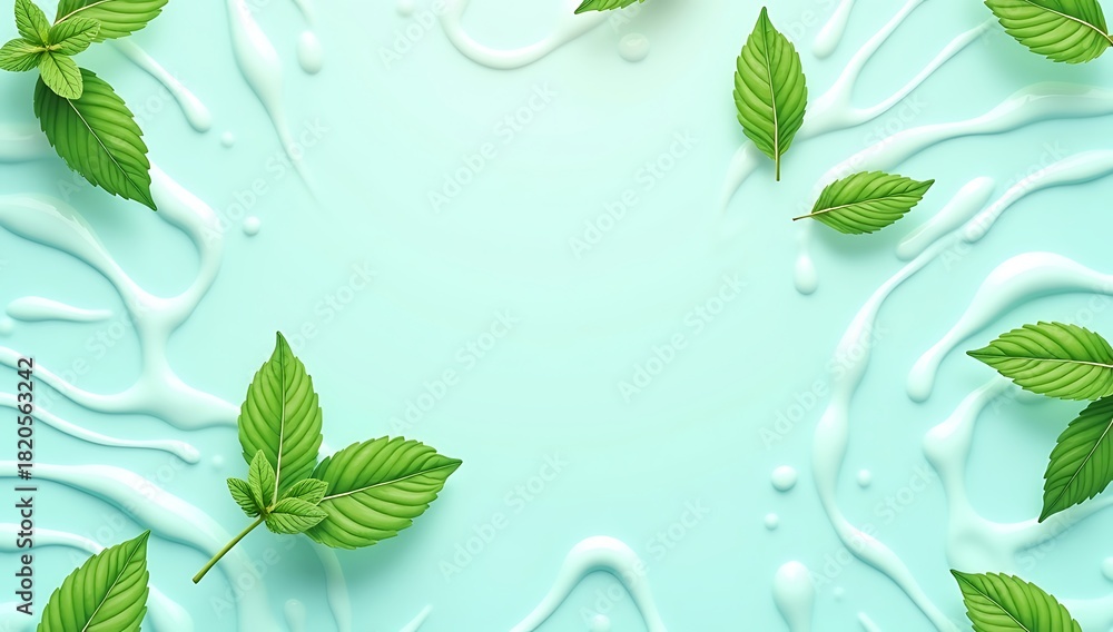 Turkus - Mint leaves with stylized water splash motifs, seamless vector pattern on a crisp aqua... #1820563242
