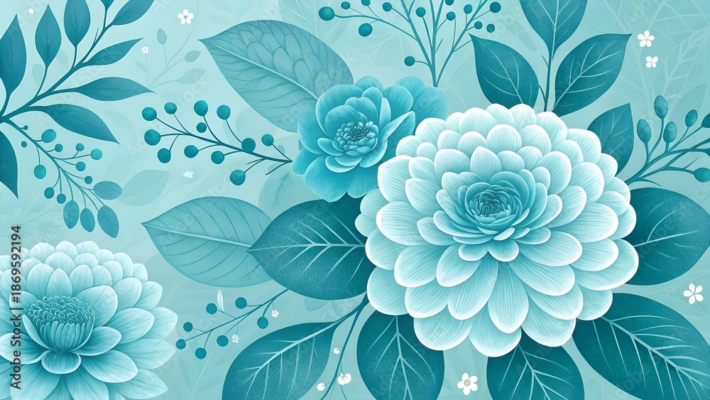 Turkus - Seamless pattern with sky blue flowers #1869592194
