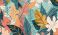 • a pattern of leaves and plants on a blue and orange background. generative ai