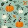 • pumpkin fall pattern autumn leaves on pastel green background seamless pattern