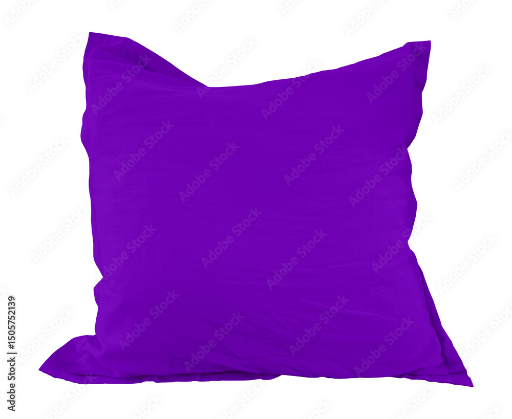 • purple square cushion isolated on background with clipping path. blank violet pillow. empty cushion for your design.