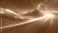 • Vibrant futuristic landscape with mountains, glowing trails, and celestial body
