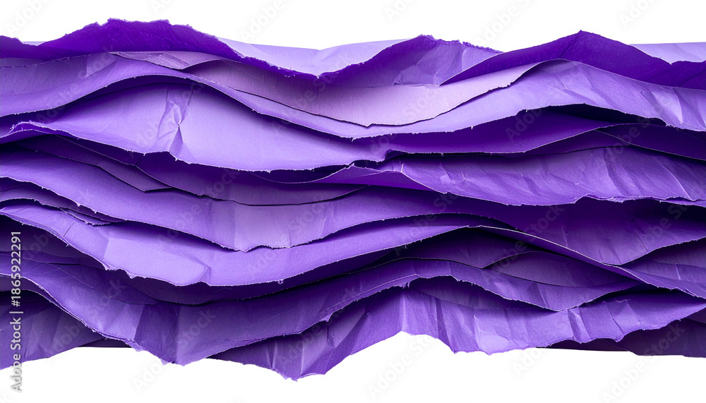 Chabrowy - Close up of layered, torn purple paper creating a wave-like design #1865922291