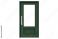 • Classic style green door featuring a large glass panel, sleek silver handle, and decorative paneling on a transparent background