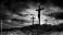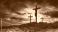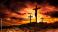• Crucifixion - Jesus Crucifix On Cross With Dramatic Sky At Sunset - Orange Clouds With Hill In Silhouette